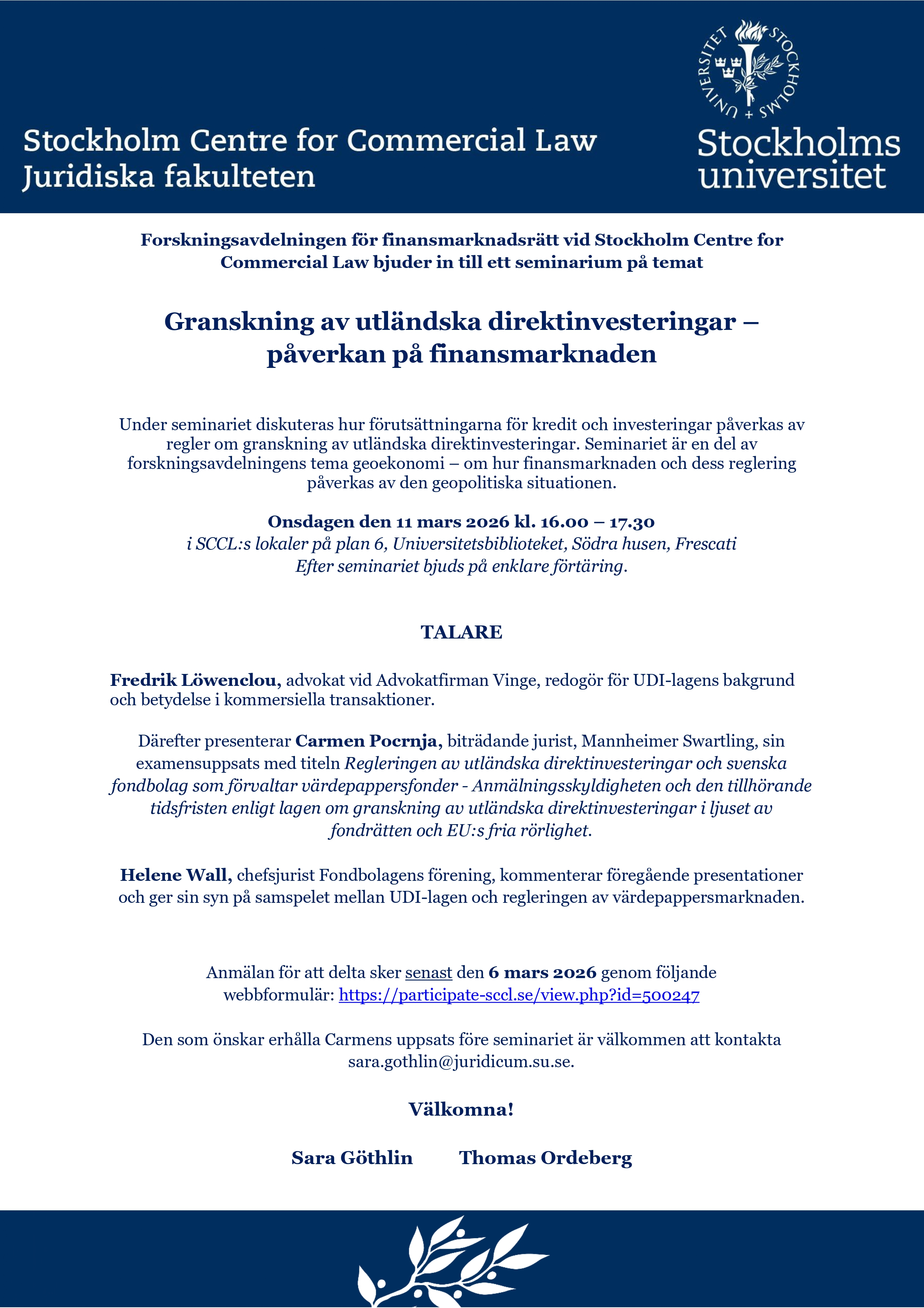 Föreningens chefsjurist Helene Wall medverkar på seminarium hos Stockholm Centre for Commercial Law.